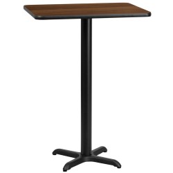 Complete your restaurant, break room or cafeteria with this bar height table top and base configuration.This set is designed for commercial use to withstand the daily rigors in the hospitality industry. This set will also make a great option for your home as a dining table or in the rec room. The reversible natural or walnut top allows you to choose your color of choice and then affix to the base. Surface is heat, scratch and moisture resistant. Use a mild detergent and water, dry clean to keep your tables spotless.Whether you are just starting your business or upgrading your furniture this bar table set will complete the look.