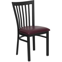 Black School House Back Metal Restaurant Chair - Mahogany Wood Seat