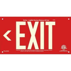 Description :Green aluminum panel, wording “<EXIT” (7 inch letters, photoluminescent), unframed with 4 holes.