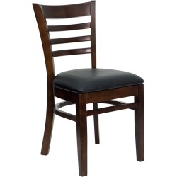 Ladder Back Walnut Wood Restaurant Chair - Custom Upholstered Seat