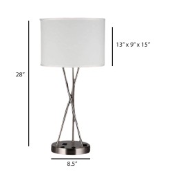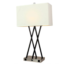 Upgrade your workspace or bedroom with this Brushed Nickel Table Lamp featuring Powder-Coated Matte Black Finish. Designed for modern interiors, it features two electrical outlets and one USB port, providing convenient device charging directly from the lamp base while delivering soft, ambient lighting.